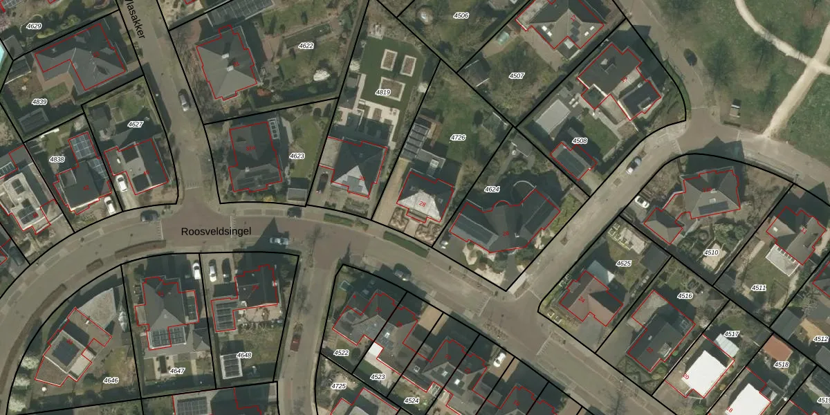 Het perceel waarop Roosveldsingel 28 staat heeft een oppervlakte van 750 m². Dit is een groot perceel. De perceeloppervlakte wordt geregistreerd door het Kadaster. Gedetailleerde informatie over de maten van dit perceel kunt u vinden in het rapport Kadastrale kaart met maatvoering van Roosveldsingel 28.