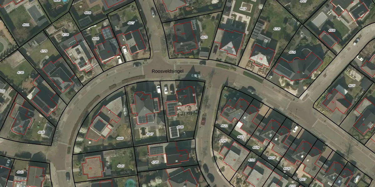 Het perceel waarop Roosveldsingel 29 staat heeft een oppervlakte van 604 m². Dit is een groot perceel. De perceeloppervlakte wordt geregistreerd door het Kadaster. Gedetailleerde informatie over de maten van dit perceel kunt u vinden in het rapport Kadastrale kaart met maatvoering van Roosveldsingel 29.