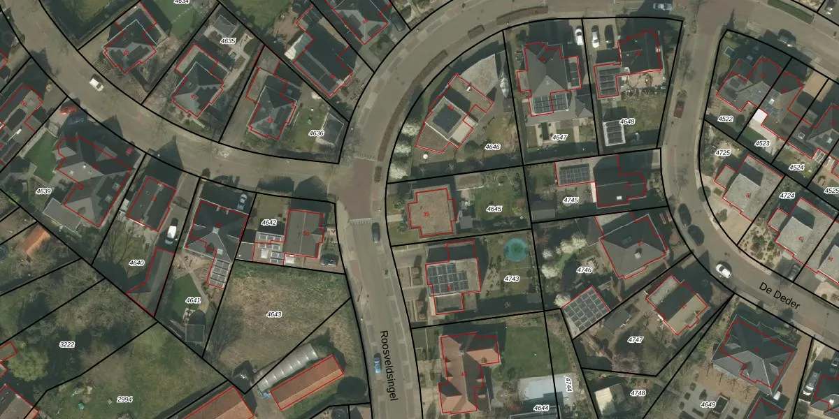 Gebruik de zoekbalk of klik op een perceel voor informatie over de adressen binnen dit perceel.