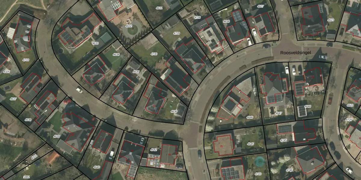Het perceel waarop Roosveldsingel 48 staat heeft een oppervlakte van 637 m². Dit is een groot perceel. De perceeloppervlakte wordt geregistreerd door het Kadaster. Gedetailleerde informatie over de maten van dit perceel kunt u vinden in het rapport Kadastrale kaart met maatvoering van Roosveldsingel 48.