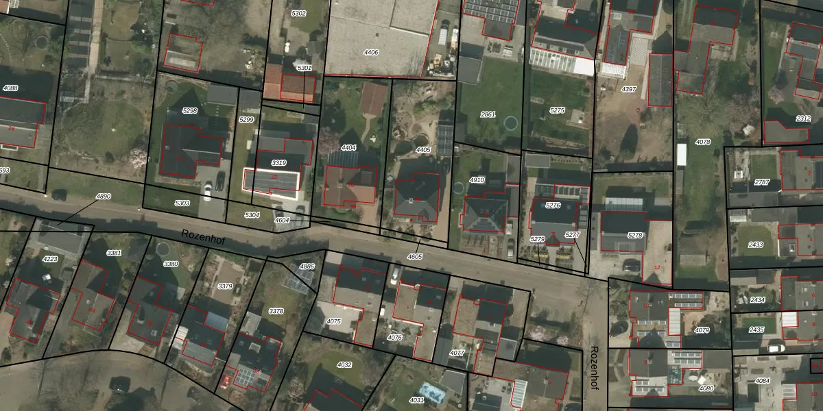 Het perceel waarop Rozenhof 18 staat heeft een oppervlakte van 608 m². Dit is een groot perceel. De perceeloppervlakte wordt geregistreerd door het Kadaster. Gedetailleerde informatie over de maten van dit perceel kunt u vinden in het rapport Kadastrale kaart met maatvoering van Rozenhof 18.