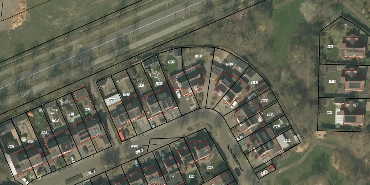 Gebruik de zoekbalk of klik op een perceel voor informatie over de adressen binnen dit perceel.