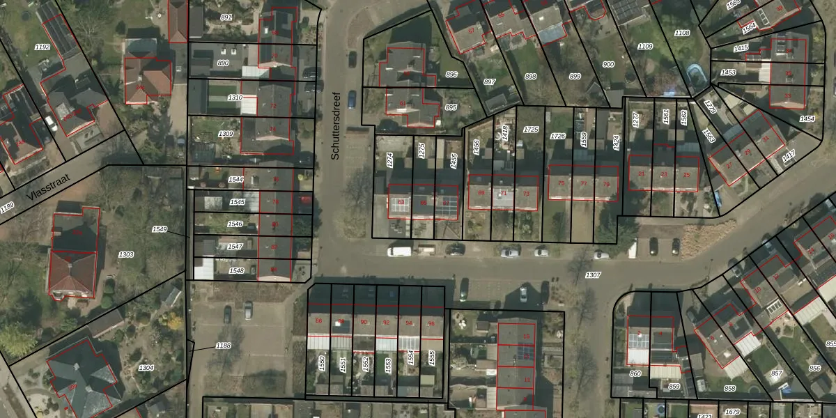 Gebruik de zoekbalk of klik op een perceel voor informatie over de adressen binnen dit perceel.
