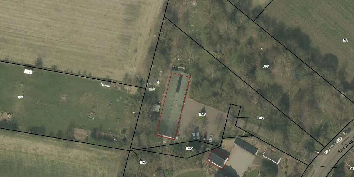 Het perceel waarop Sint Antoniusstraat 45-a staat heeft een oppervlakte van 3765 m². Dit is een zeer groot perceel. De perceeloppervlakte wordt geregistreerd door het Kadaster. Gedetailleerde informatie over de maten van dit perceel kunt u vinden in het rapport Kadastrale kaart met maatvoering van Sint Antoniusstraat 45-a.