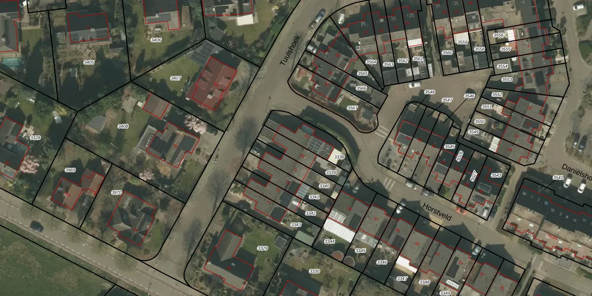 Het perceel waarop Tuulshoek 69 staat heeft een oppervlakte van 173 m². Dit is een middelgroot perceel. De perceeloppervlakte wordt geregistreerd door het Kadaster. Gedetailleerde informatie over de maten van dit perceel kunt u vinden in het rapport Kadastrale kaart met maatvoering van Tuulshoek 69.