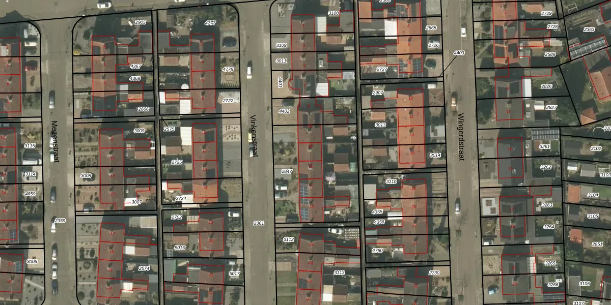 Het perceel waarop Vinkenstraat 13 staat heeft een oppervlakte van 893 m². Dit is een groot perceel. De perceeloppervlakte wordt geregistreerd door het Kadaster. Gedetailleerde informatie over de maten van dit perceel kunt u vinden in het rapport Kadastrale kaart met maatvoering van Vinkenstraat 13.