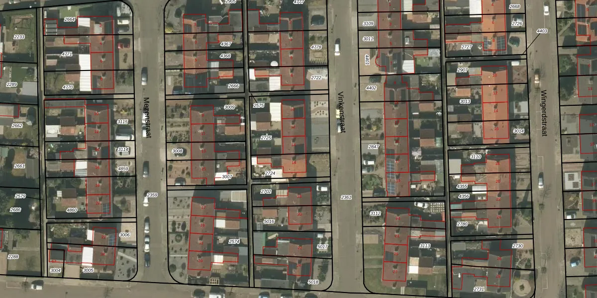 Het perceel waarop Vinkenstraat 14 staat heeft een oppervlakte van 530 m². Dit is een groot perceel. De perceeloppervlakte wordt geregistreerd door het Kadaster. Gedetailleerde informatie over de maten van dit perceel kunt u vinden in het rapport Kadastrale kaart met maatvoering van Vinkenstraat 14.
