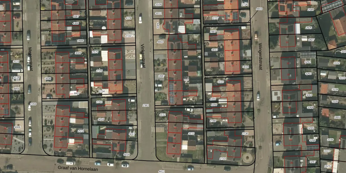 Het perceel waarop Vinkenstraat 17 staat heeft een oppervlakte van 893 m². Dit is een groot perceel. De perceeloppervlakte wordt geregistreerd door het Kadaster. Gedetailleerde informatie over de maten van dit perceel kunt u vinden in het rapport Kadastrale kaart met maatvoering van Vinkenstraat 17.