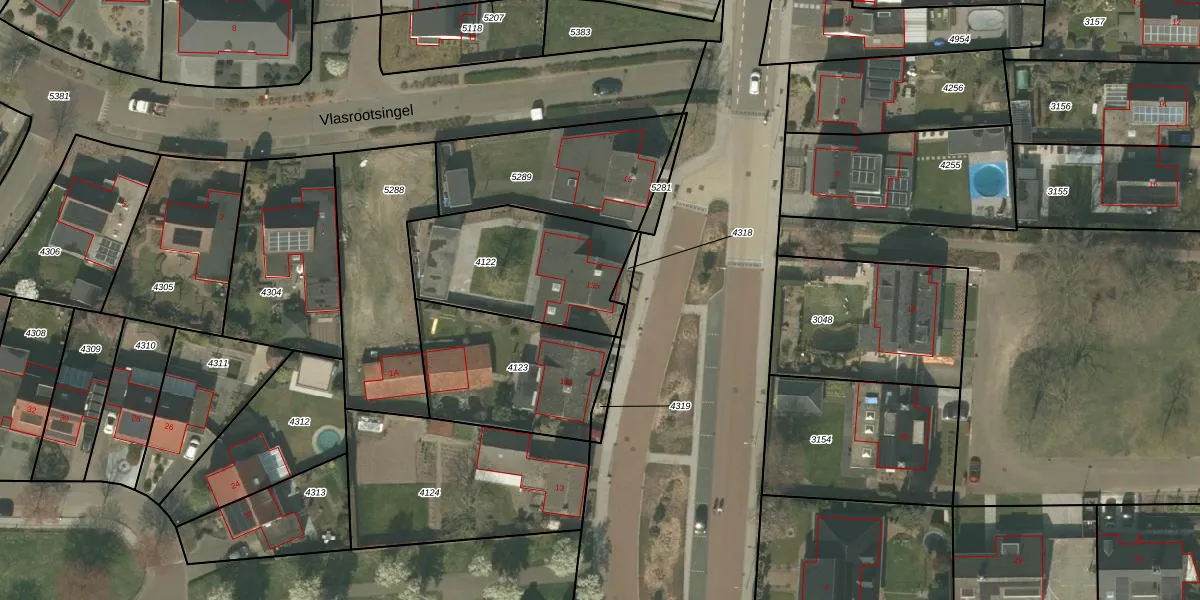 Vlasstraat 13-b is gelegen op kadastraal perceel HHS00C4122. Deze kadastrale aanduiding is uniek en wordt gebruikt door het Kadaster om eigendomsrechten en andere zakelijke rechten vast te leggen. Het perceel maakt onderdeel uit van de kadastrale gemeente Heythuysen.