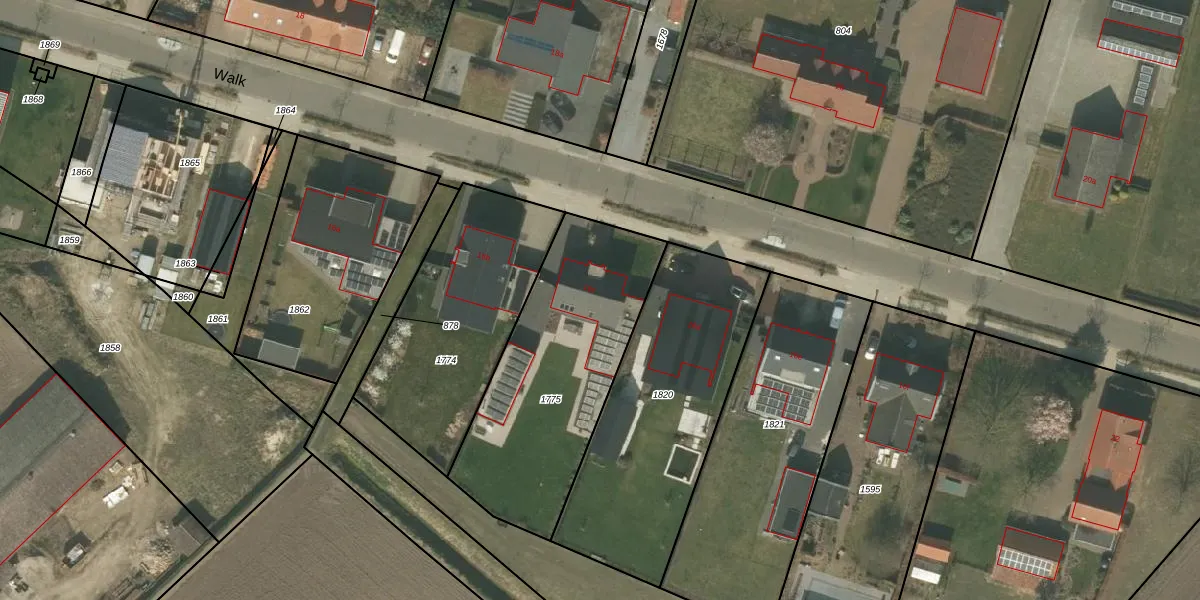 Het perceel waarop Walk 16-c staat heeft een oppervlakte van 980 m². Dit is een groot perceel. De perceeloppervlakte wordt geregistreerd door het Kadaster. Gedetailleerde informatie over de maten van dit perceel kunt u vinden in het rapport Kadastrale kaart met maatvoering van Walk 16-c.