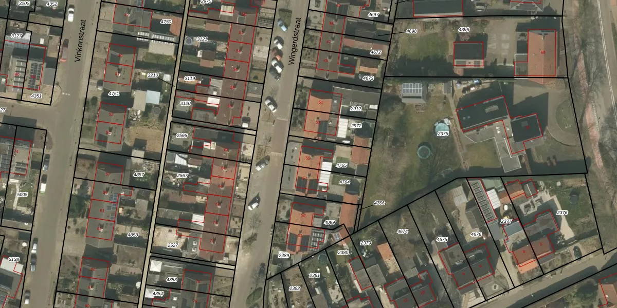 Gebruik de zoekbalk of klik op een perceel voor informatie over de adressen binnen dit perceel.