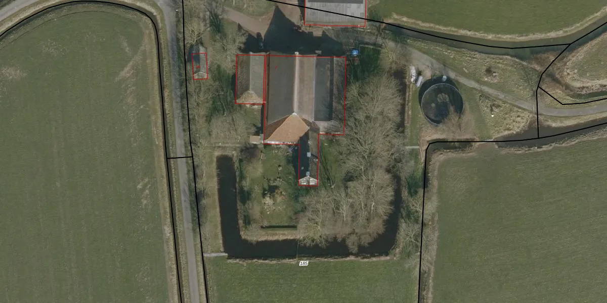 Het perceel waarop het adres ligt is TND00-H-185. De afkorting 'TND00' staat voor kadastrale gemeente Ternaard. De gemiddelde perceeloppervlakte in de kadastrale gemeente Ternaard is 1,0 ha. Dit perceel is met zijn 1,1 ha dus groter dan gemiddeld. Het kleinste perceel in de kadastrale gemeente is 1 m² groot. De grootste perceeloppervlakte is 2,87 km². Op het perceel zijn 2 adressen aanwezig. In de Basisregistratie Kadaster (BRK) werden de grenzen van het perceel geregistreerd op 29-12-2014.