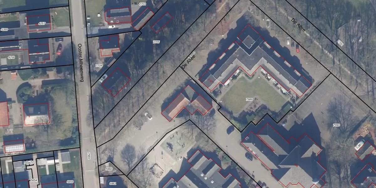 Het perceel waarop De Allee 39 staat heeft een oppervlakte van 6900 m². Dit is een zeer groot perceel. De perceeloppervlakte wordt geregistreerd door het Kadaster. Gedetailleerde informatie over de maten van dit perceel kunt u vinden in het rapport Kadastrale kaart met maatvoering van De Allee 39.