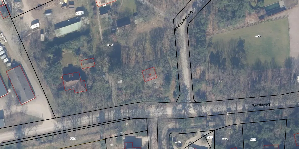 Het perceel waarop Paasloweg 3-B staat heeft een oppervlakte van 8930 m². Dit is een zeer groot perceel. De perceeloppervlakte wordt geregistreerd door het Kadaster. Gedetailleerde informatie over de maten van dit perceel kunt u vinden in het rapport Kadastrale kaart met maatvoering van Paasloweg 3-B.