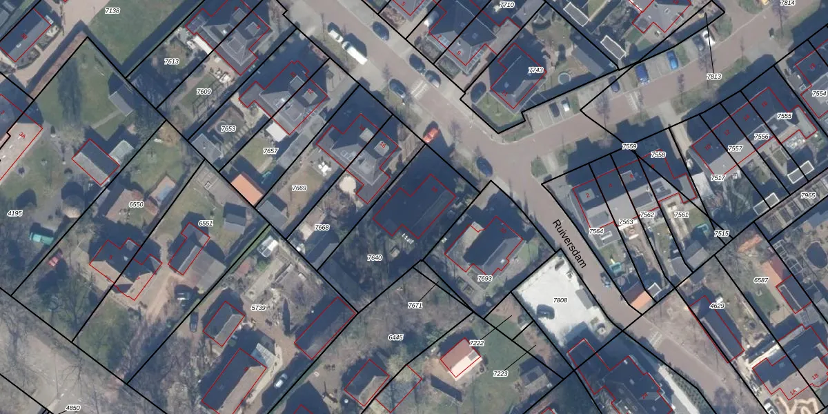 Het perceel waarop Ruiversdam 18 staat heeft een oppervlakte van 689 m². Dit is een groot perceel. De perceeloppervlakte wordt geregistreerd door het Kadaster. Gedetailleerde informatie over de maten van dit perceel kunt u vinden in het rapport Kadastrale kaart met maatvoering van Ruiversdam 18.