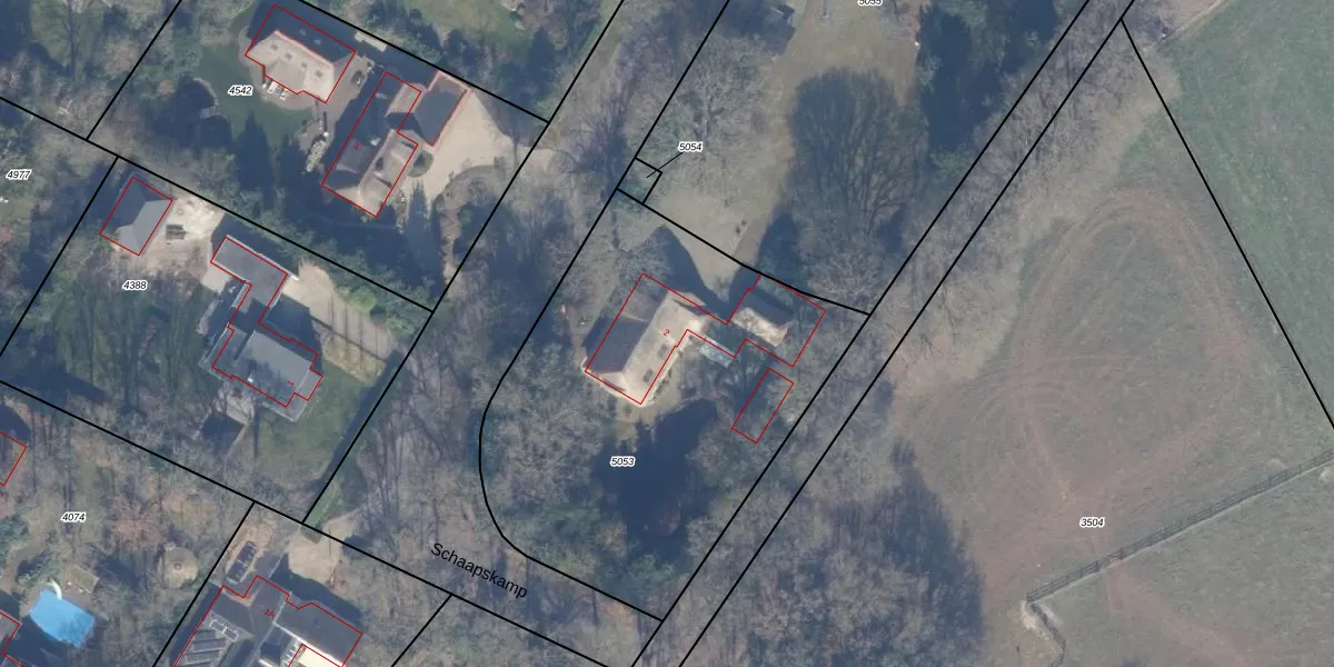 Het perceel waarop Schaapskamp 2 staat heeft een oppervlakte van 2180 m². Dit is een zeer groot perceel. De perceeloppervlakte wordt geregistreerd door het Kadaster. Gedetailleerde informatie over de maten van dit perceel kunt u vinden in het rapport Kadastrale kaart met maatvoering van Schaapskamp 2.