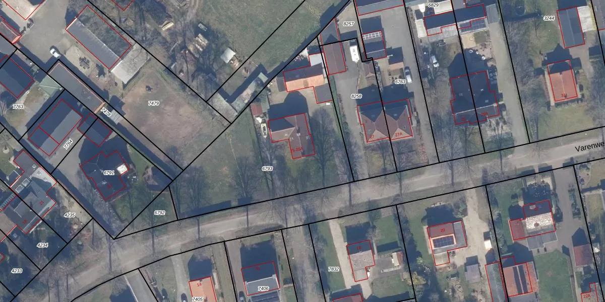 Varenweg 25 is gelegen op kadastraal perceel HDW00B6793. Deze kadastrale aanduiding is uniek en wordt gebruikt door het Kadaster om eigendomsrechten en andere zakelijke rechten vast te leggen. Het perceel maakt onderdeel uit van de kadastrale gemeente Harderwijk.