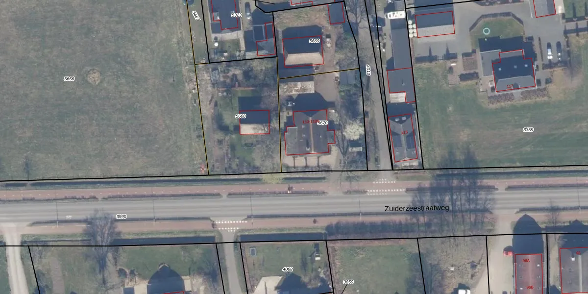 Het perceel waarop Zuiderzeestraatweg 113 staat heeft een oppervlakte van 966 m². Dit is een groot perceel. De perceeloppervlakte wordt geregistreerd door het Kadaster. Gedetailleerde informatie over de maten van dit perceel kunt u vinden in het rapport Kadastrale kaart met maatvoering van Zuiderzeestraatweg 113.
