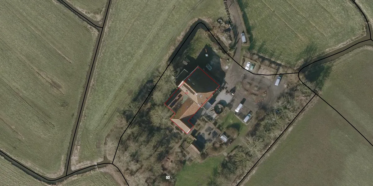 Het perceel waarop Tempelreed 14 staat heeft een oppervlakte van 6420 m². Dit is een zeer groot perceel. De perceeloppervlakte wordt geregistreerd door het Kadaster. Gedetailleerde informatie over de maten van dit perceel kunt u vinden in het rapport Kadastrale kaart met maatvoering van Tempelreed 14.