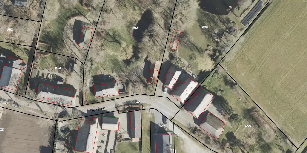 Het perceel waarop De Hoek 5-A staat heeft een oppervlakte van 4498 m². Dit is een zeer groot perceel. De perceeloppervlakte wordt geregistreerd door het Kadaster. Gedetailleerde informatie over de maten van dit perceel kunt u vinden in het rapport Kadastrale kaart met maatvoering van De Hoek 5-A.