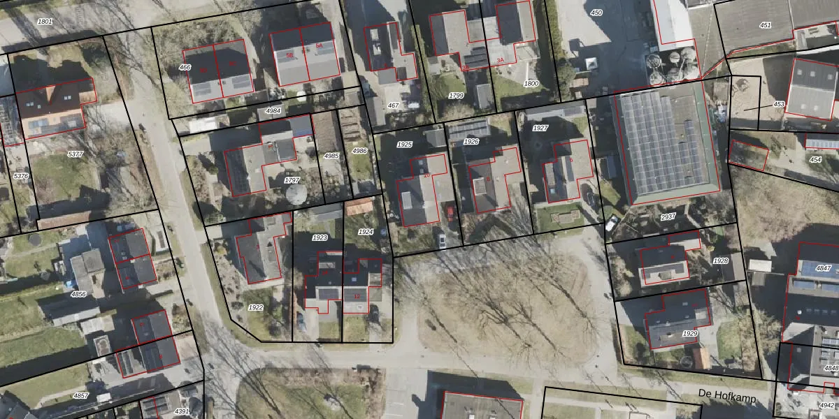 Gebruik de zoekbalk of klik op een perceel voor informatie over de adressen binnen dit perceel.