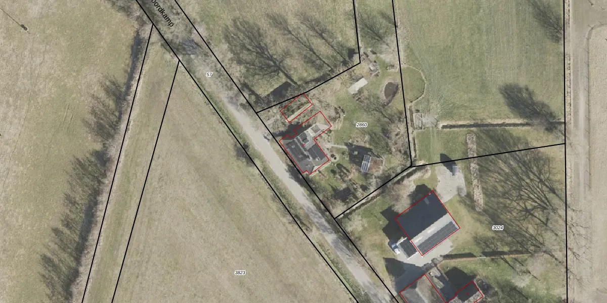 Het perceel waarop Noordkamp 6 staat heeft een oppervlakte van 3030 m². Dit is een zeer groot perceel. De perceeloppervlakte wordt geregistreerd door het Kadaster. Gedetailleerde informatie over de maten van dit perceel kunt u vinden in het rapport Kadastrale kaart met maatvoering van Noordkamp 6.