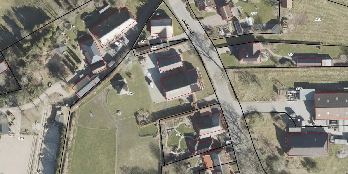 Het perceel waarop Oosteinde 4 staat heeft een oppervlakte van 5866 m². Dit is een zeer groot perceel. De perceeloppervlakte wordt geregistreerd door het Kadaster. Gedetailleerde informatie over de maten van dit perceel kunt u vinden in het rapport Kadastrale kaart met maatvoering van Oosteinde 4.