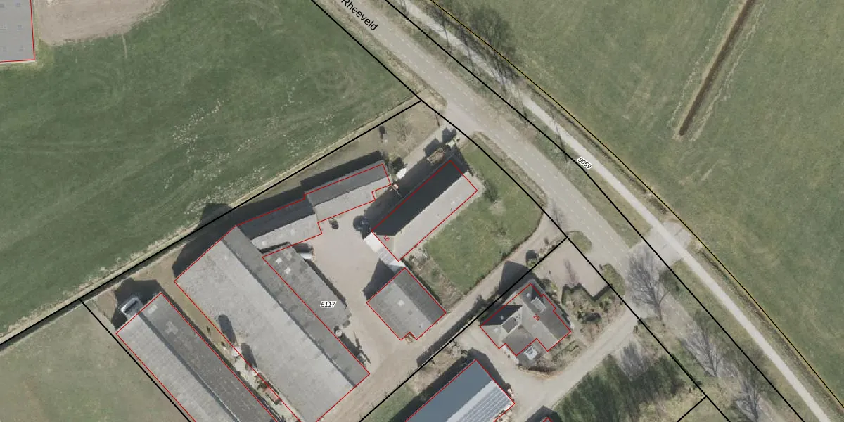 Het perceel waarop Rheeveld 18 staat heeft een oppervlakte van 5645 m². Dit is een zeer groot perceel. De perceeloppervlakte wordt geregistreerd door het Kadaster. Gedetailleerde informatie over de maten van dit perceel kunt u vinden in het rapport Kadastrale kaart met maatvoering van Rheeveld 18.
