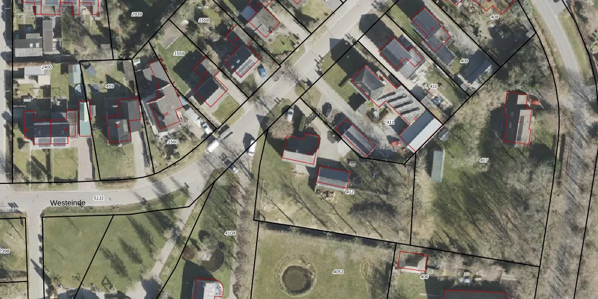 Westeinde 21 is gelegen op kadastraal perceel BLN00R412. Deze kadastrale aanduiding is uniek en wordt gebruikt door het Kadaster om eigendomsrechten en andere zakelijke rechten vast te leggen. Het perceel maakt onderdeel uit van de kadastrale gemeente Beilen.