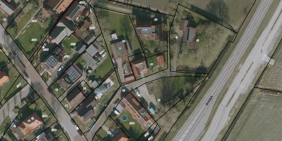 Het perceel waarop Terp 14 staat heeft een oppervlakte van 377 m². Dit is een groot perceel. De perceeloppervlakte wordt geregistreerd door het Kadaster. Gedetailleerde informatie over de maten van dit perceel kunt u vinden in het rapport Kadastrale kaart met maatvoering van Terp 14.
