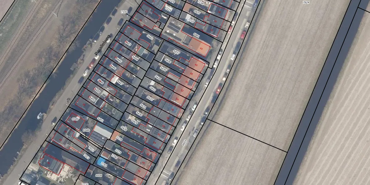 Gebruik de zoekbalk of klik op een perceel voor informatie over de adressen binnen dit perceel.