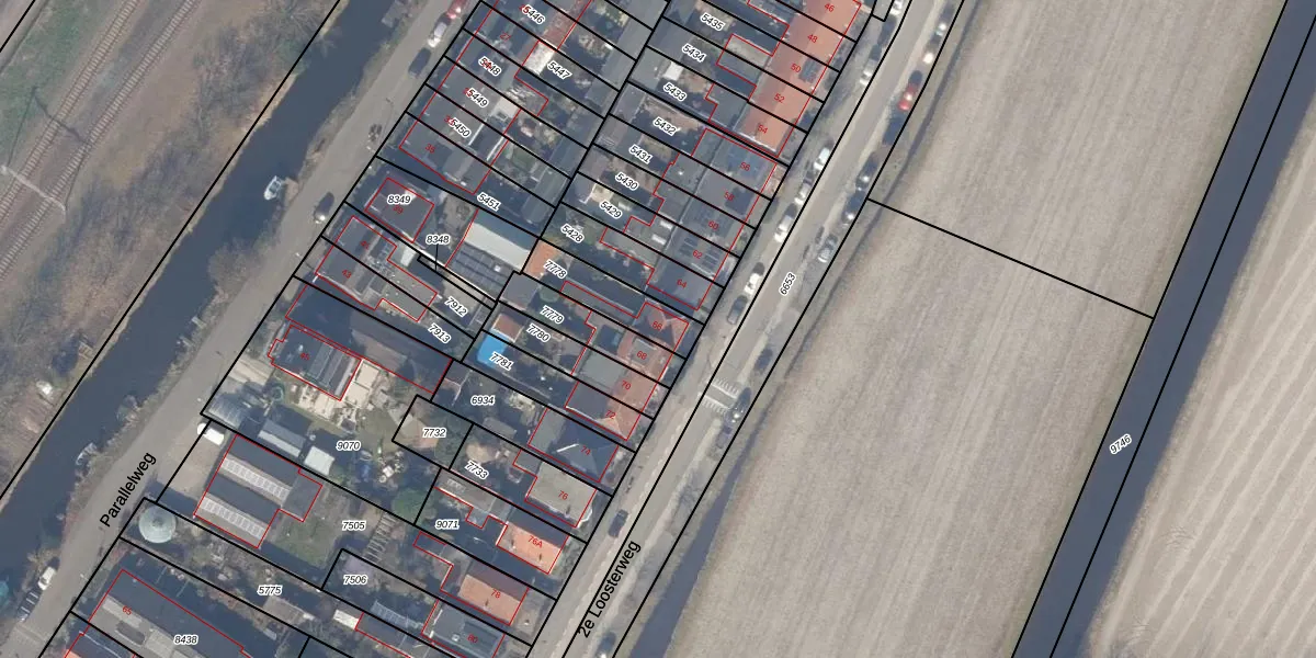 Gebruik de zoekbalk of klik op een perceel voor informatie over de adressen binnen dit perceel.