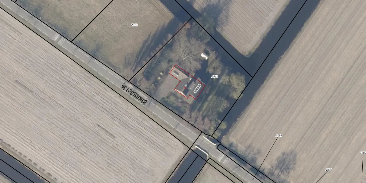 Het perceel waarop 3e Loosterweg 45 staat heeft een oppervlakte van 2205 m². Dit is een zeer groot perceel. De perceeloppervlakte wordt geregistreerd door het Kadaster. Gedetailleerde informatie over de maten van dit perceel kunt u vinden in het rapport Kadastrale kaart met maatvoering van 3e Loosterweg 45.