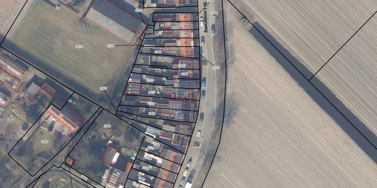 Gebruik de zoekbalk of klik op een perceel voor informatie over de adressen binnen dit perceel.