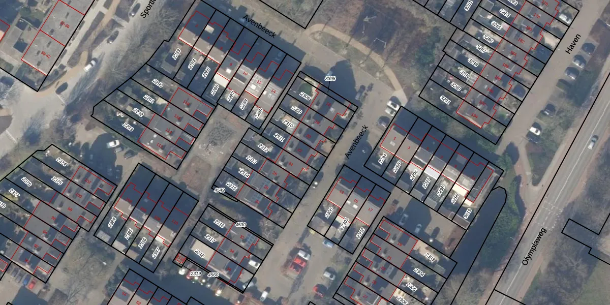 Gebruik de zoekbalk of klik op een perceel voor informatie over de adressen binnen dit perceel.