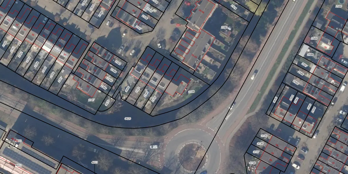 Gebruik de zoekbalk of klik op een perceel voor informatie over de adressen binnen dit perceel.