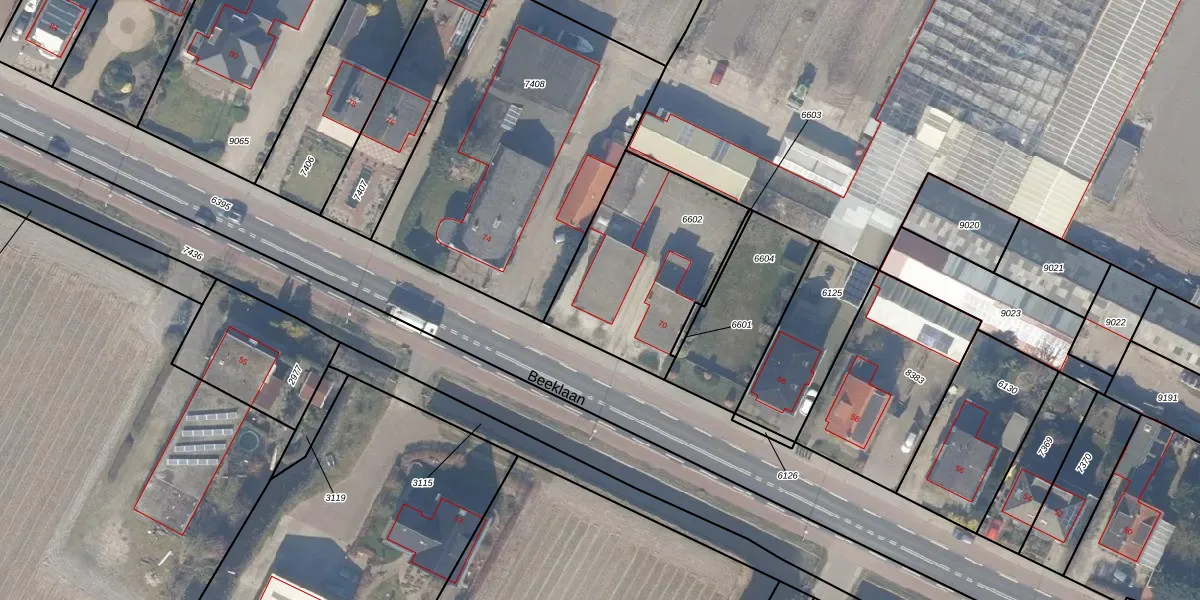 Beeklaan 72 is gelegen op kadastraal perceel HLG01A6602. Deze kadastrale aanduiding is uniek en wordt gebruikt door het Kadaster om eigendomsrechten en andere zakelijke rechten vast te leggen. Het perceel maakt onderdeel uit van de kadastrale gemeente Hillegom.