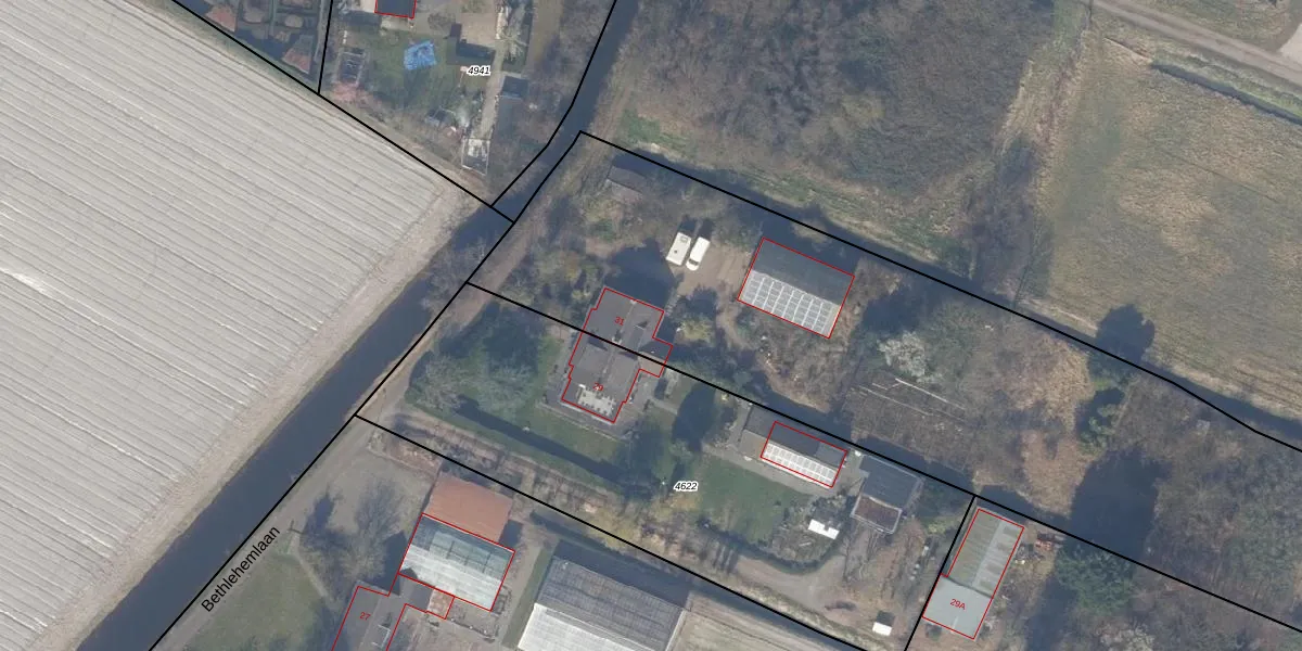 Het perceel waarop Bethlehemlaan 31 staat heeft een oppervlakte van 1,2 ha. Dit is een zeer groot perceel. De perceeloppervlakte wordt geregistreerd door het Kadaster. Gedetailleerde informatie over de maten van dit perceel kunt u vinden in het rapport Kadastrale kaart met maatvoering van Bethlehemlaan 31.