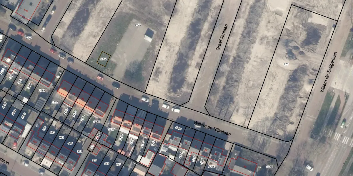 Het perceel waarop Graaf Janlaan 7 staat heeft een oppervlakte van 5855 m². Dit is een zeer groot perceel. De perceeloppervlakte wordt geregistreerd door het Kadaster. Gedetailleerde informatie over de maten van dit perceel kunt u vinden in het rapport Kadastrale kaart met maatvoering van Graaf Janlaan 7.