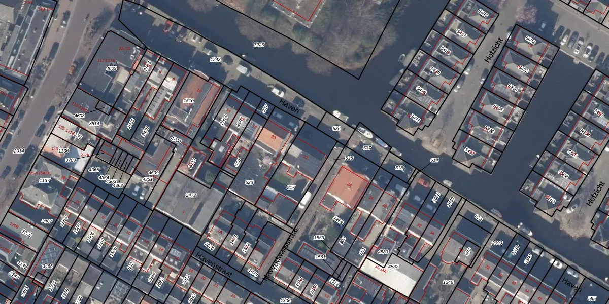 Het perceel waarop Haven 22 staat heeft een oppervlakte van 388 m². Dit is een groot perceel. De perceeloppervlakte wordt geregistreerd door het Kadaster. Gedetailleerde informatie over de maten van dit perceel kunt u vinden in het rapport Kadastrale kaart met maatvoering van Haven 22.