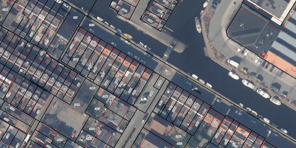 Het perceel waarop Haven 72 staat heeft een oppervlakte van 143 m². Dit is een middelgroot perceel. De perceeloppervlakte wordt geregistreerd door het Kadaster. Gedetailleerde informatie over de maten van dit perceel kunt u vinden in het rapport Kadastrale kaart met maatvoering van Haven 72.