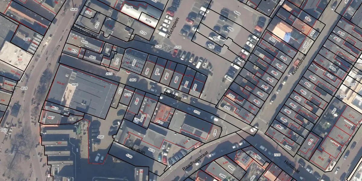 Het perceel waarop Hofstraat 13 staat heeft een oppervlakte van 87 m². Dit is een klein perceel. De perceeloppervlakte wordt geregistreerd door het Kadaster. Gedetailleerde informatie over de maten van dit perceel kunt u vinden in het rapport Kadastrale kaart met maatvoering van Hofstraat 13.