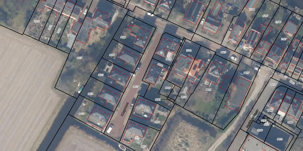 Klaproos 1 is gelegen op kadastraal perceel HLG01A9090. Deze kadastrale aanduiding is uniek en wordt gebruikt door het Kadaster om eigendomsrechten en andere zakelijke rechten vast te leggen. Het perceel maakt onderdeel uit van de kadastrale gemeente Hillegom.