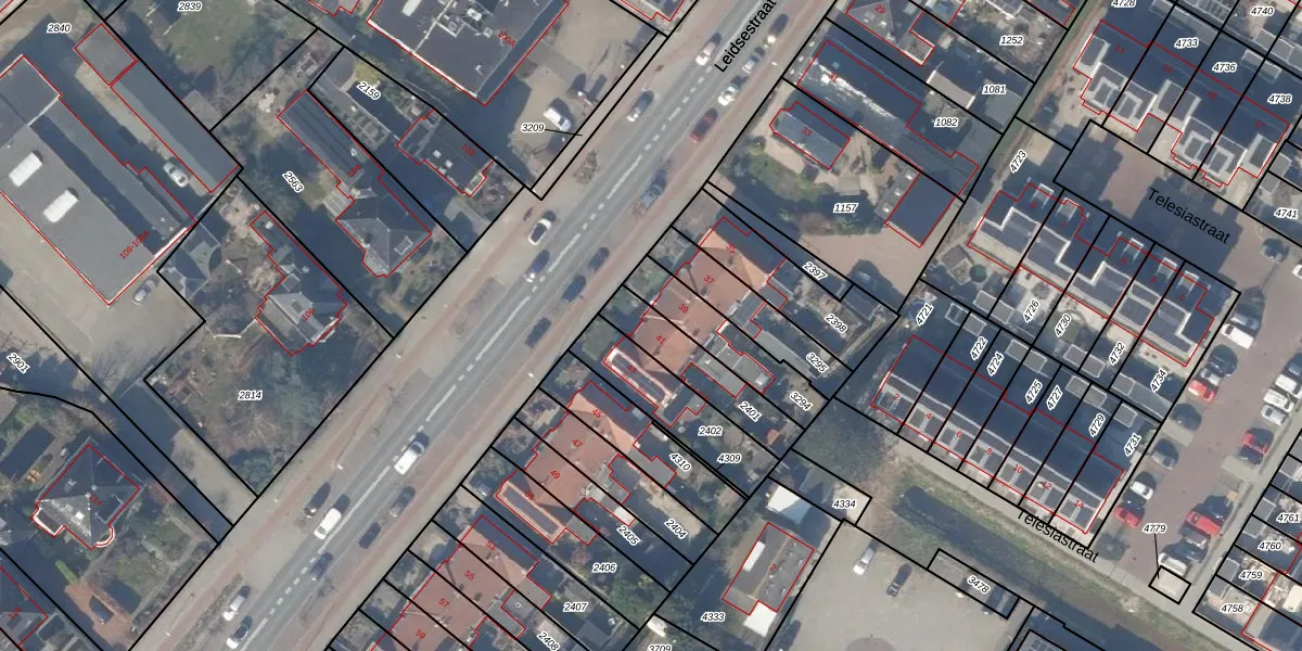 Leidsestraat 41 is gelegen op kadastraal perceel HLG01C2401. Deze kadastrale aanduiding is uniek en wordt gebruikt door het Kadaster om eigendomsrechten en andere zakelijke rechten vast te leggen. Het perceel maakt onderdeel uit van de kadastrale gemeente Hillegom.