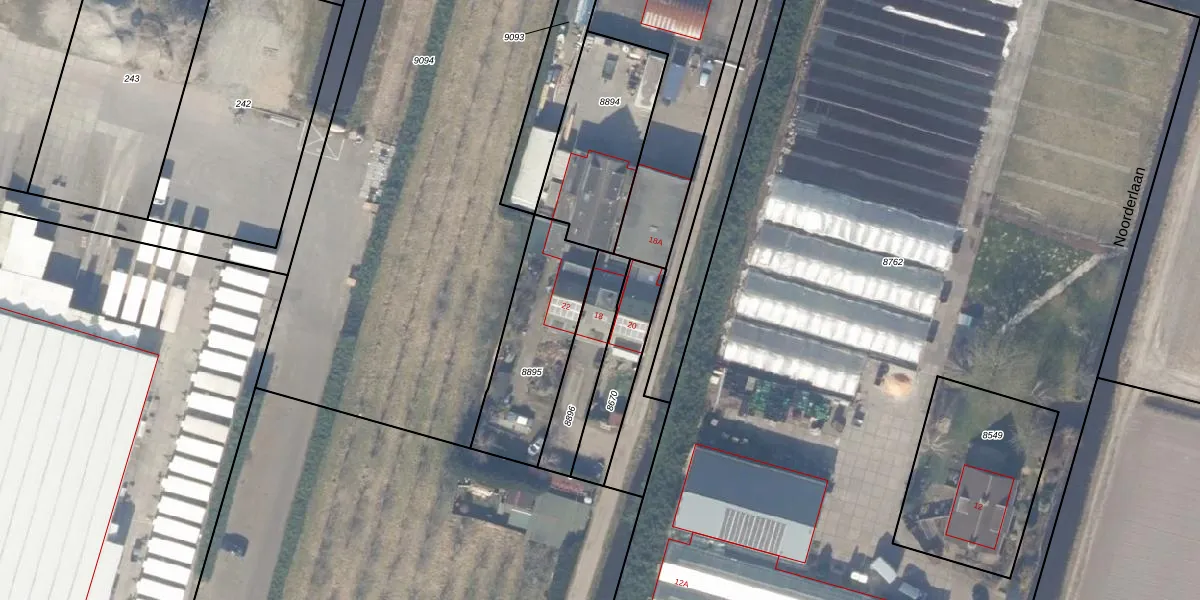 Noorderlaan 18 is gelegen op kadastraal perceel HLG01A8896. Deze kadastrale aanduiding is uniek en wordt gebruikt door het Kadaster om eigendomsrechten en andere zakelijke rechten vast te leggen. Het perceel maakt onderdeel uit van de kadastrale gemeente Hillegom.