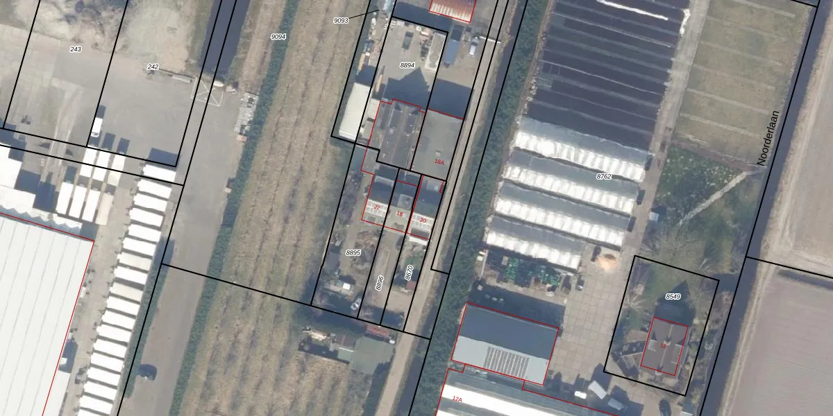 Noorderlaan 20 is gelegen op kadastraal perceel HLG01A8670. Deze kadastrale aanduiding is uniek en wordt gebruikt door het Kadaster om eigendomsrechten en andere zakelijke rechten vast te leggen. Het perceel maakt onderdeel uit van de kadastrale gemeente Hillegom.