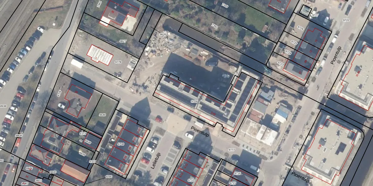 Het perceel waarop Pioentulp 9 staat heeft een oppervlakte van 935 m². Dit is een groot perceel. De perceeloppervlakte wordt geregistreerd door het Kadaster. Gedetailleerde informatie over de maten van dit perceel kunt u vinden in het rapport Kadastrale kaart met maatvoering van Pioentulp 9.