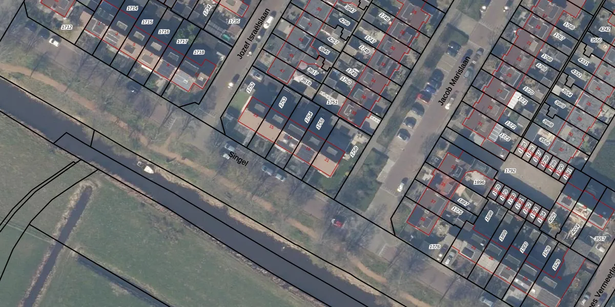 Het perceel waarop Singel 19 staat heeft een oppervlakte van 166 m². Dit is een middelgroot perceel. De perceeloppervlakte wordt geregistreerd door het Kadaster. Gedetailleerde informatie over de maten van dit perceel kunt u vinden in het rapport Kadastrale kaart met maatvoering van Singel 19.