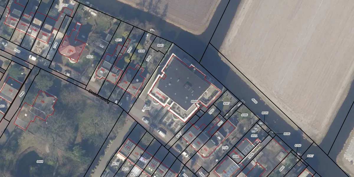Het perceel waarop Stationsweg 154-G staat heeft een oppervlakte van 1642 m². Dit is een zeer groot perceel. De perceeloppervlakte wordt geregistreerd door het Kadaster. Gedetailleerde informatie over de maten van dit perceel kunt u vinden in het rapport Kadastrale kaart met maatvoering van Stationsweg 154-G.