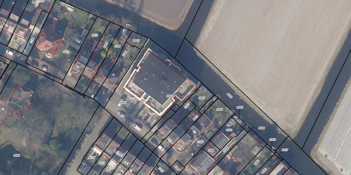 Het perceel waarop Stationsweg 154-P staat heeft een oppervlakte van 1642 m². Dit is een zeer groot perceel. De perceeloppervlakte wordt geregistreerd door het Kadaster. Gedetailleerde informatie over de maten van dit perceel kunt u vinden in het rapport Kadastrale kaart met maatvoering van Stationsweg 154-P.